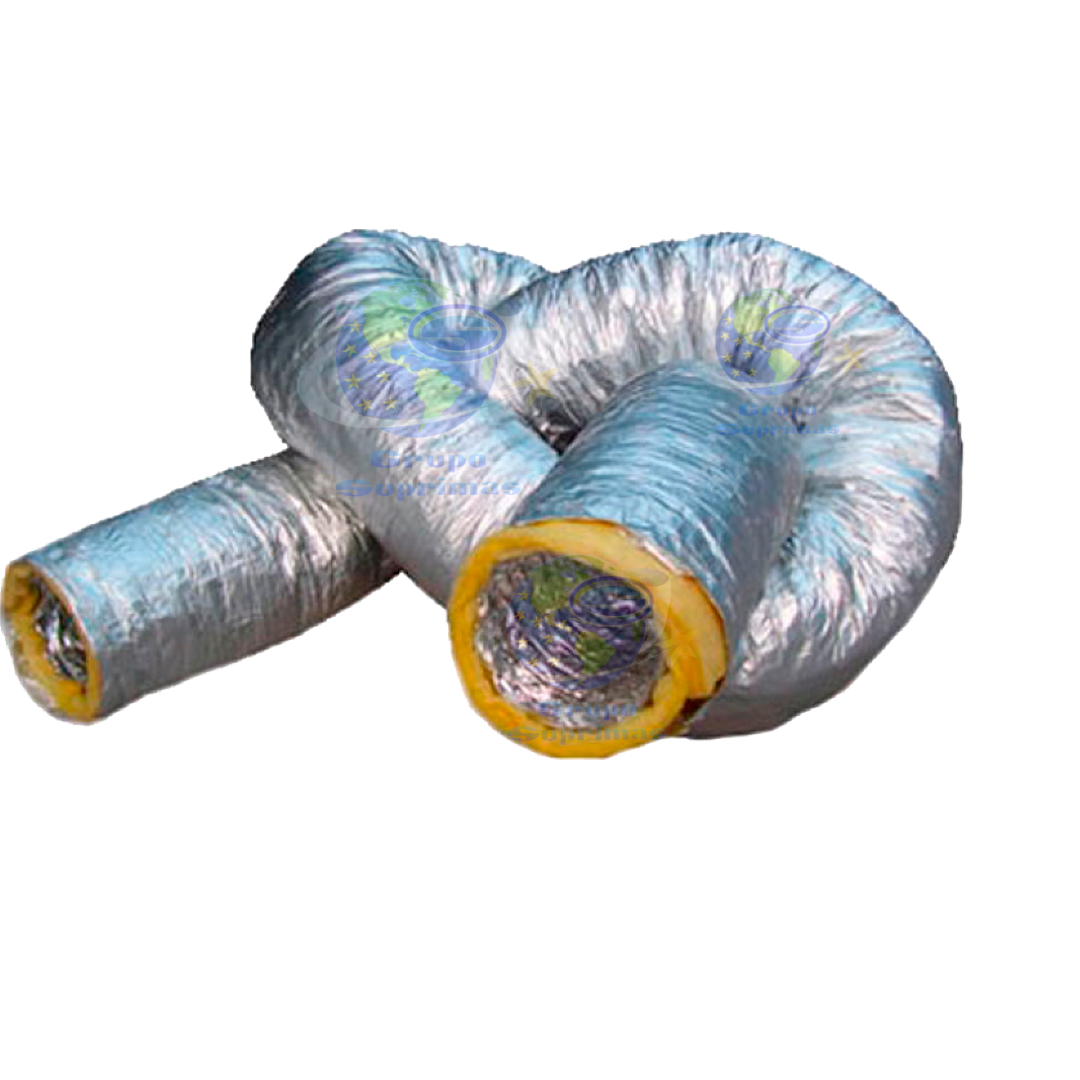 Composto por tubo interno de alumínio com espiral de aço de alto carbono, isolado com manta de lã de vidro e revestido externamente por folha de alumínio e filme de poliéster, garante excelente isolamento térmico e durabilidade.